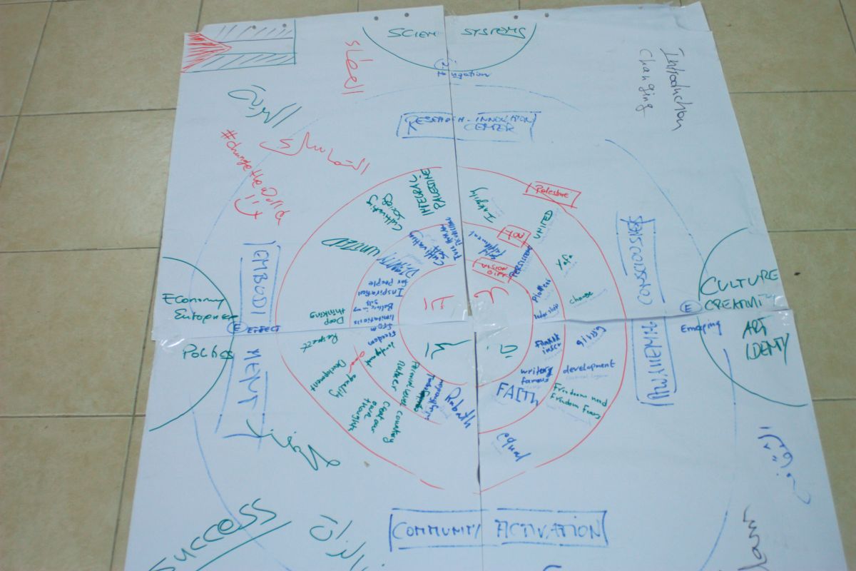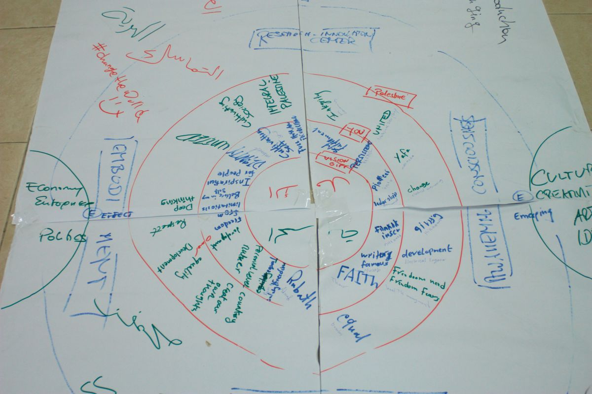 2 April 2017: Under the active Stewardship of Trans4m Global Wisdom Council Member Zahira Kamal, Alexander Schieffer conducted a one day workshop with 30 Palestinian youth leaders, co-exploring the potential of Trans4m’s Integral Worlds approach to contribute to the liberation process of Palestine. After an introduction into Integral Worlds as well as an overview of its regional (Arab World) and global applications, the co-creative and highly interactive workshop focused on the development of an integral “self-in-society” map. The map provided new perspectives to the Palestinian youth leaders to link and unite their personal life passions with their call for a liberated, free Palestine.